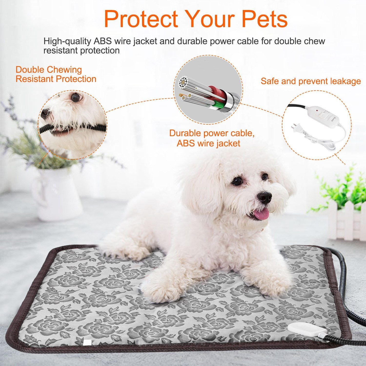 *Waterproof & Moisture-proof Pet Heating Pad*:Durable oxford fabric and waterproof material for long-lasting,comfortable,flexible,waterproof,dust free,anti-electric shock(ensure your pet's safety), easy to clean by hand.