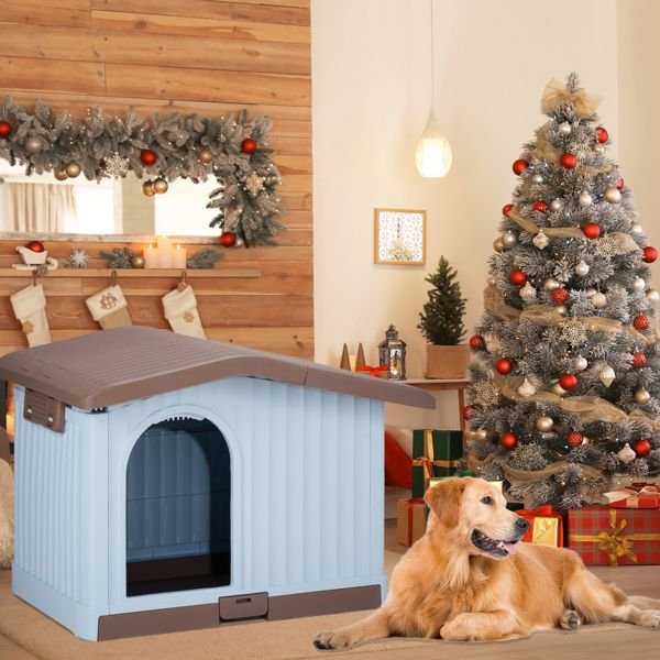 Provide your pet with the ultimate comfort and protection with this 34-inch Large Plastic Dog House. Designed for both indoor and outdoor use, this doghouse features a liftable roof and an adjustable window for optimal ventilation and temperature control. The elevated floor keeps your furry friend dry, while the sturdy PVC construction ensures lasting durability. With easy assembly and a detachable base, maintenance is a breeze, making this the perfect shelter for your pet in any weather.