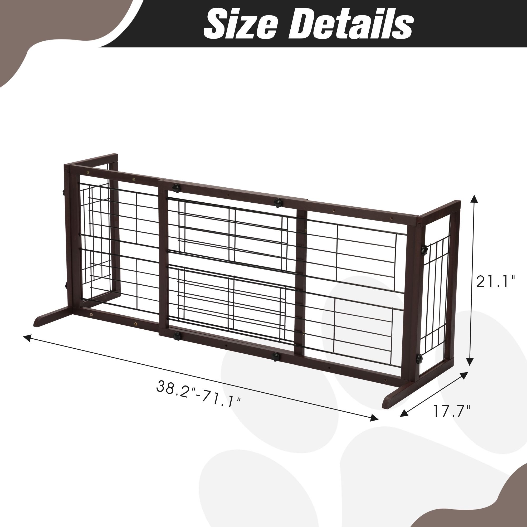 38"-71" Adjustable Wooden Pet Gate for Dogs, Indoor Freestanding Dog Fence for Doorways, Stairs, Deep Brown