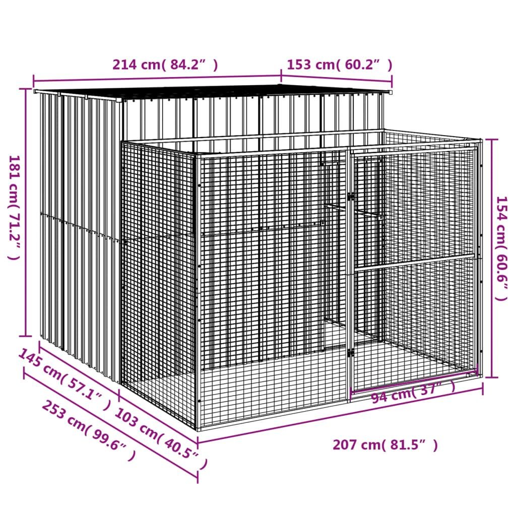 Dog House with Run Light Gray 84.3"x99.6"x71.3" Galvanized Steel