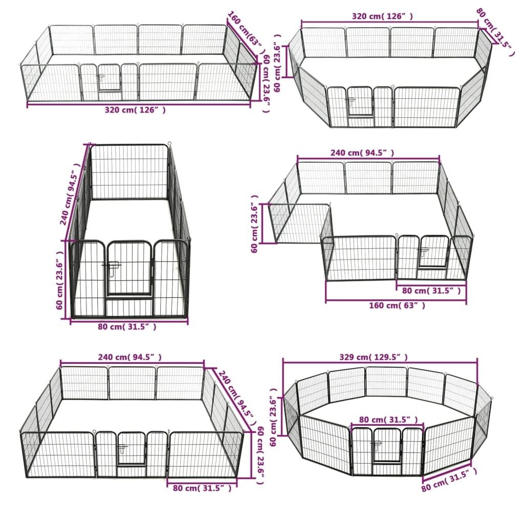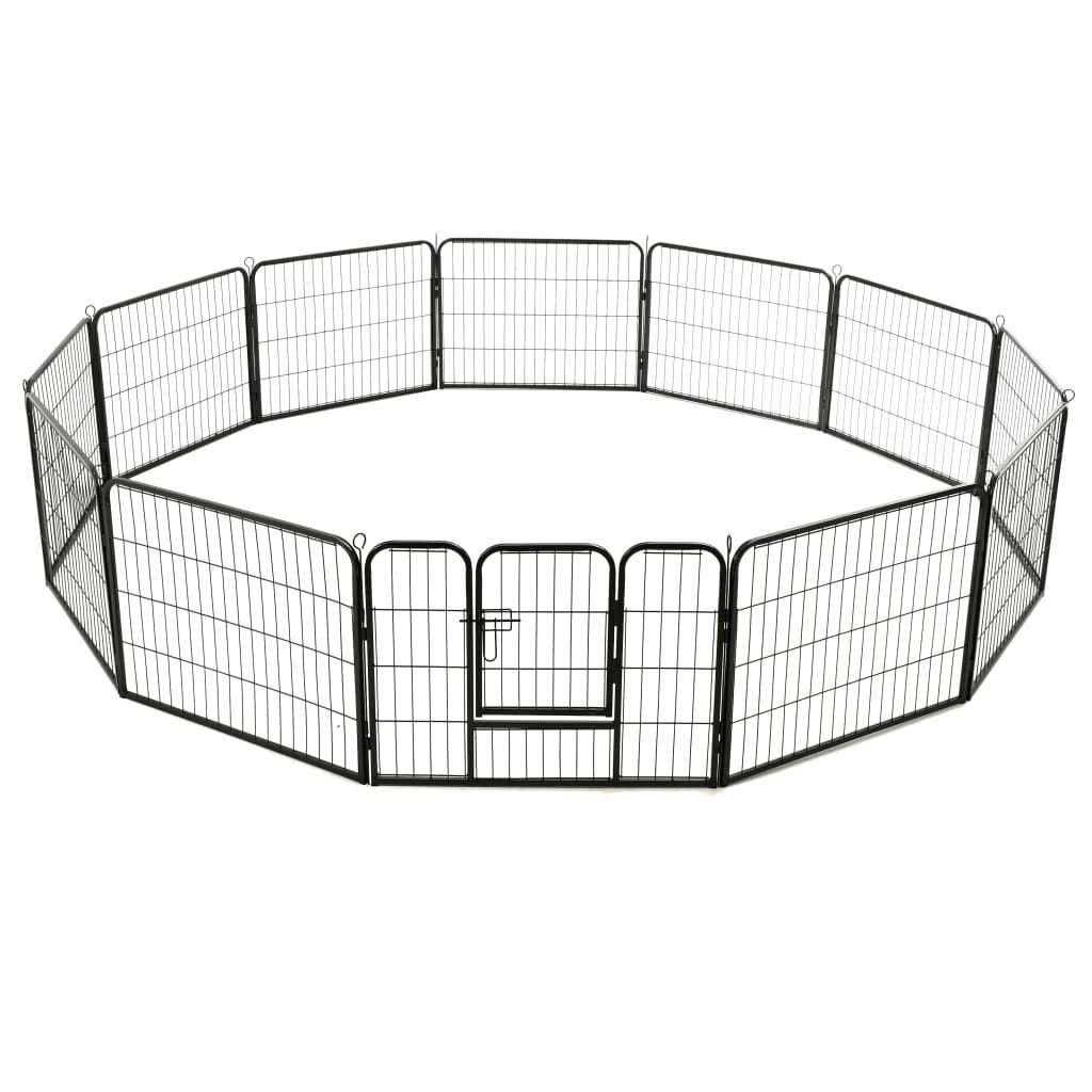 Dog Playpen 12 Panels Steel 31.5"x23.6" Black