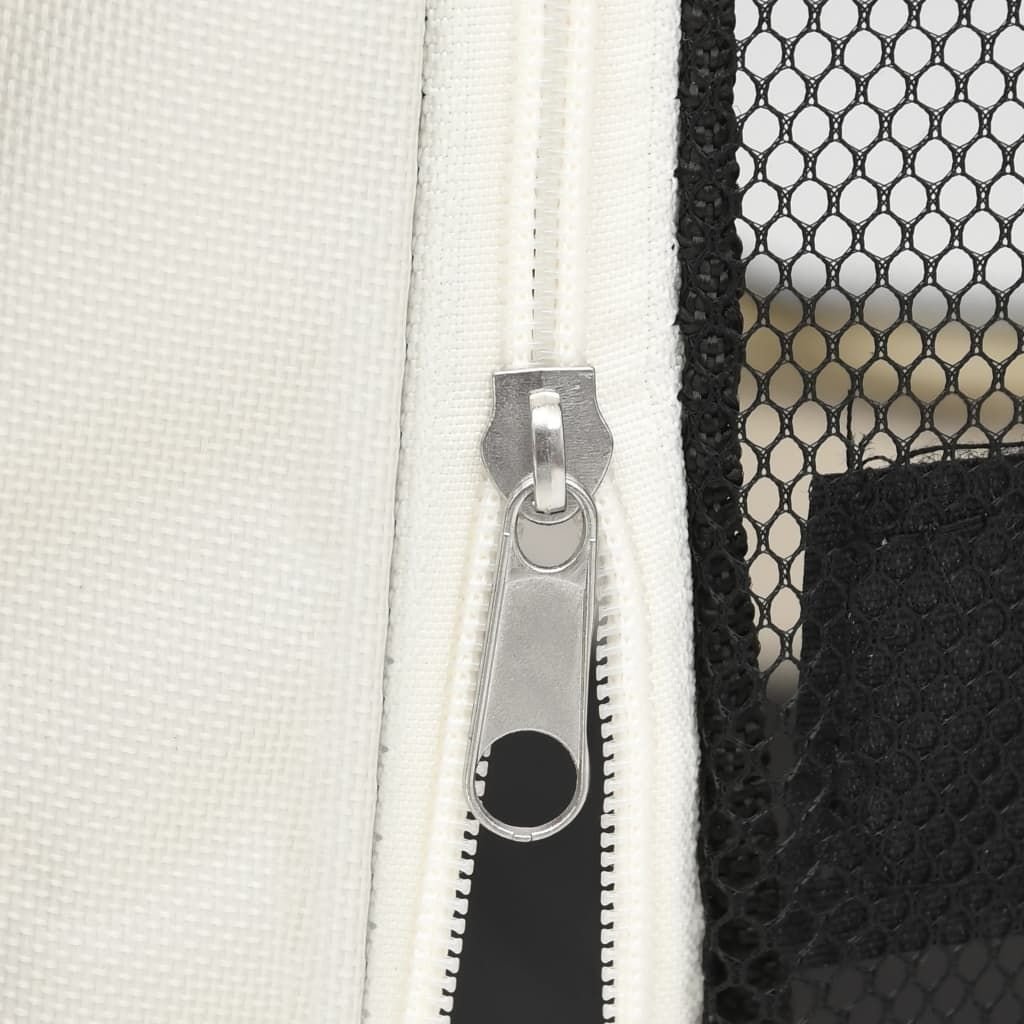 This playpen, with the dimensions of 49.2"x49.2"x24", is perfect for using at home or travelling. It includes a carrying bag for convenient storage. It is lightweight and yet very sturdy, thanks to the strong steel frame. The mesh roof and door can be opened or closed quickly with the zipper. The side nets ensure good air circulation and great visibility. Additionally, the side pockets are suitable to keep small items, like toys. This run cage can be easily stored with its foldable design when not in use.
