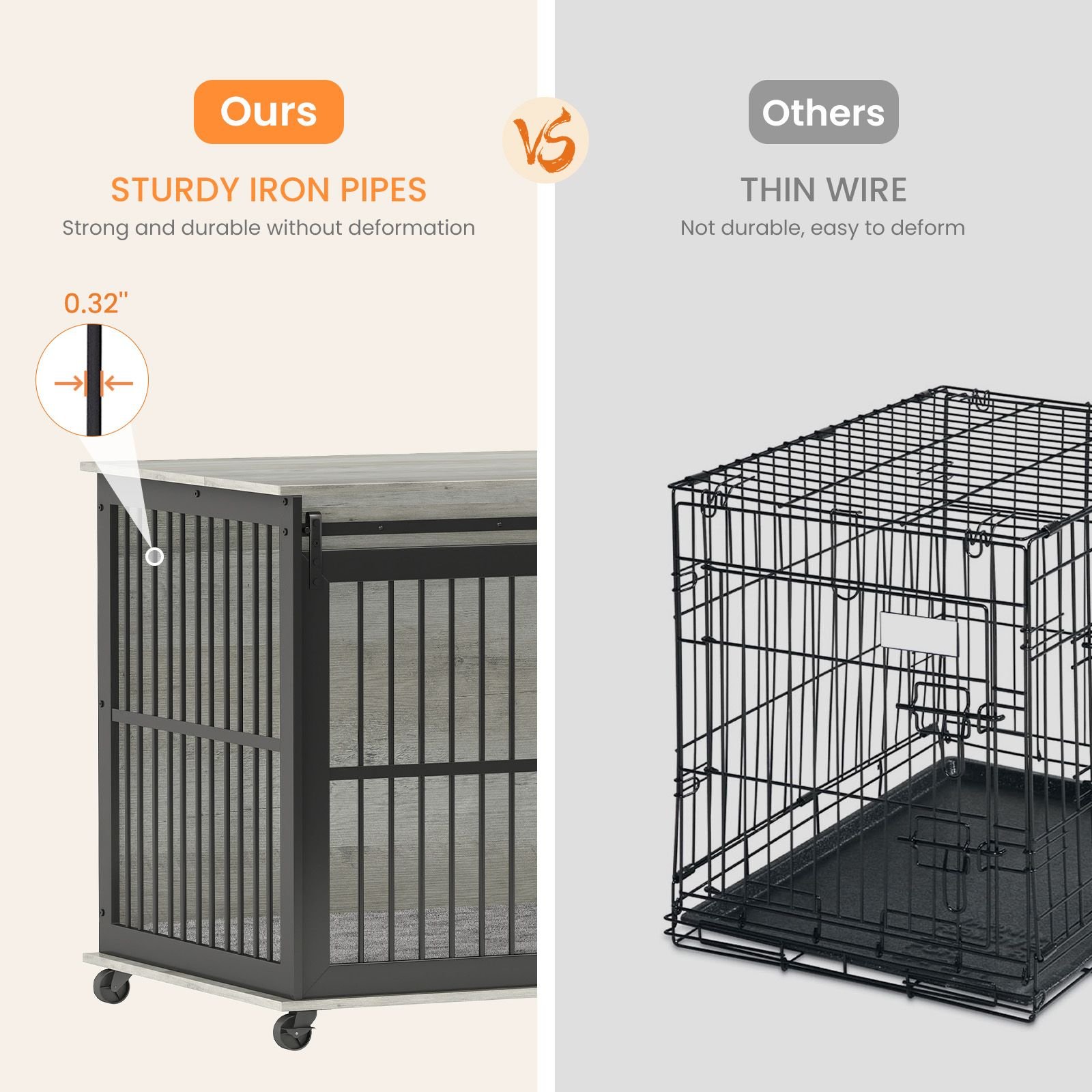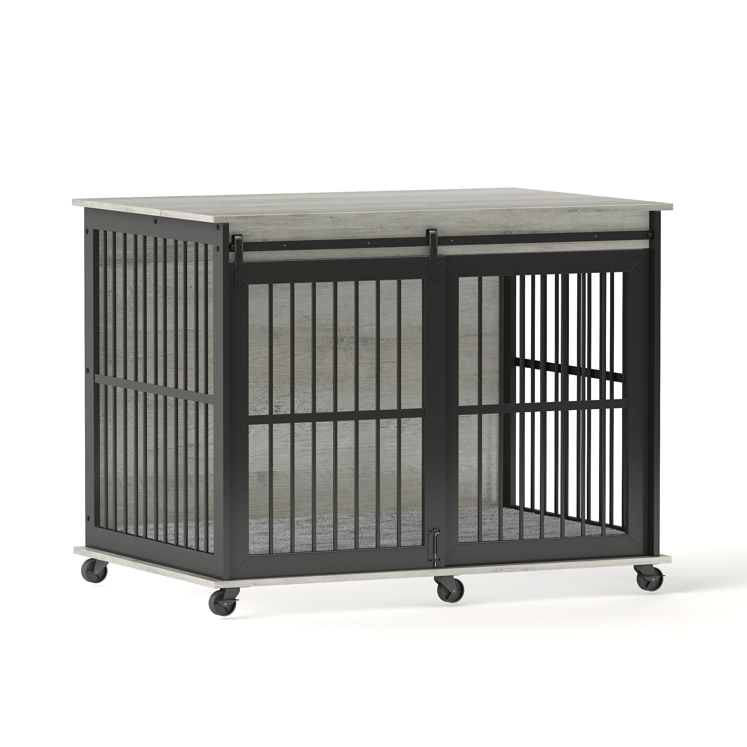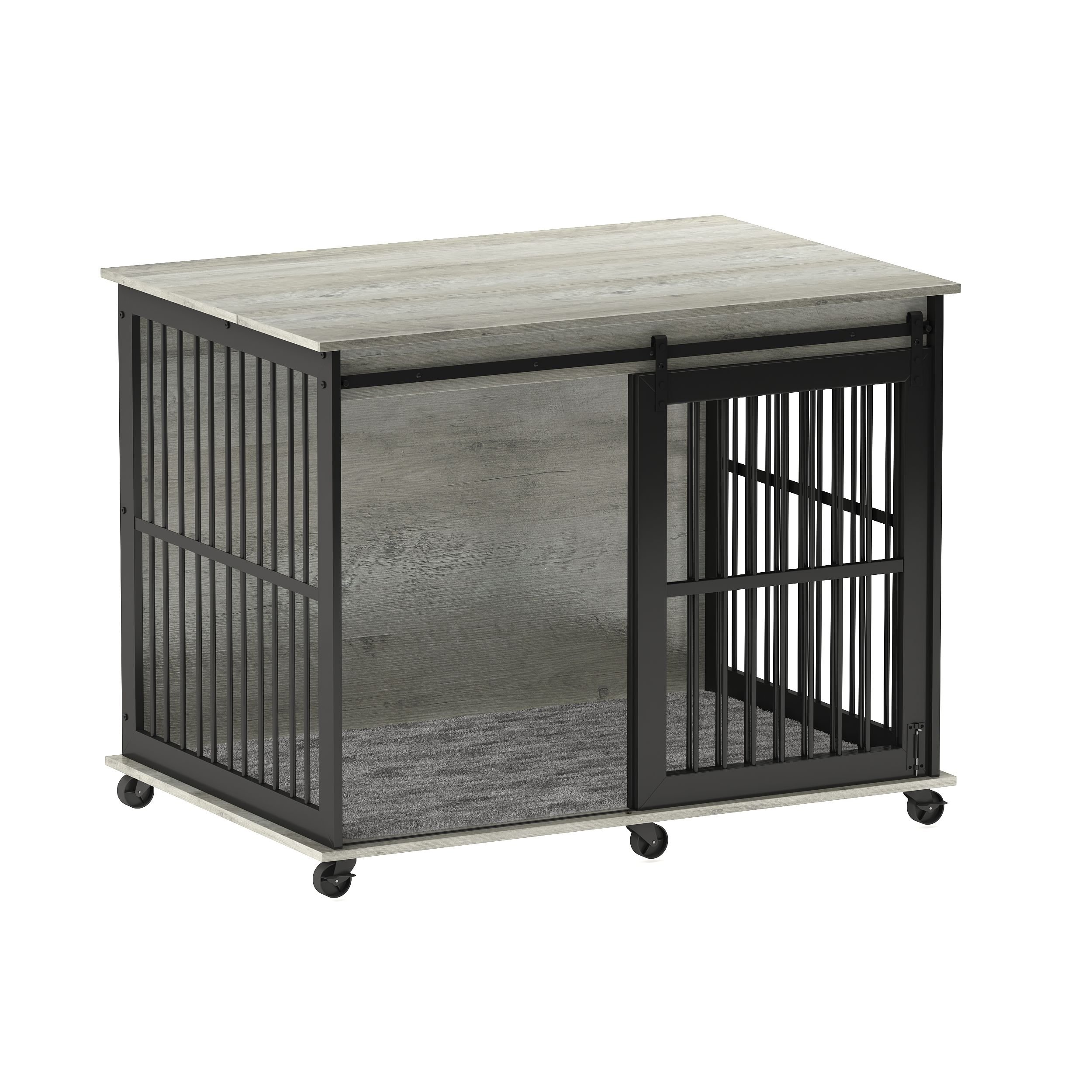 Furniture dog crate sliding iron door dog crate with mat. (Grey,43.7''W x 30''D x 33.7''H)