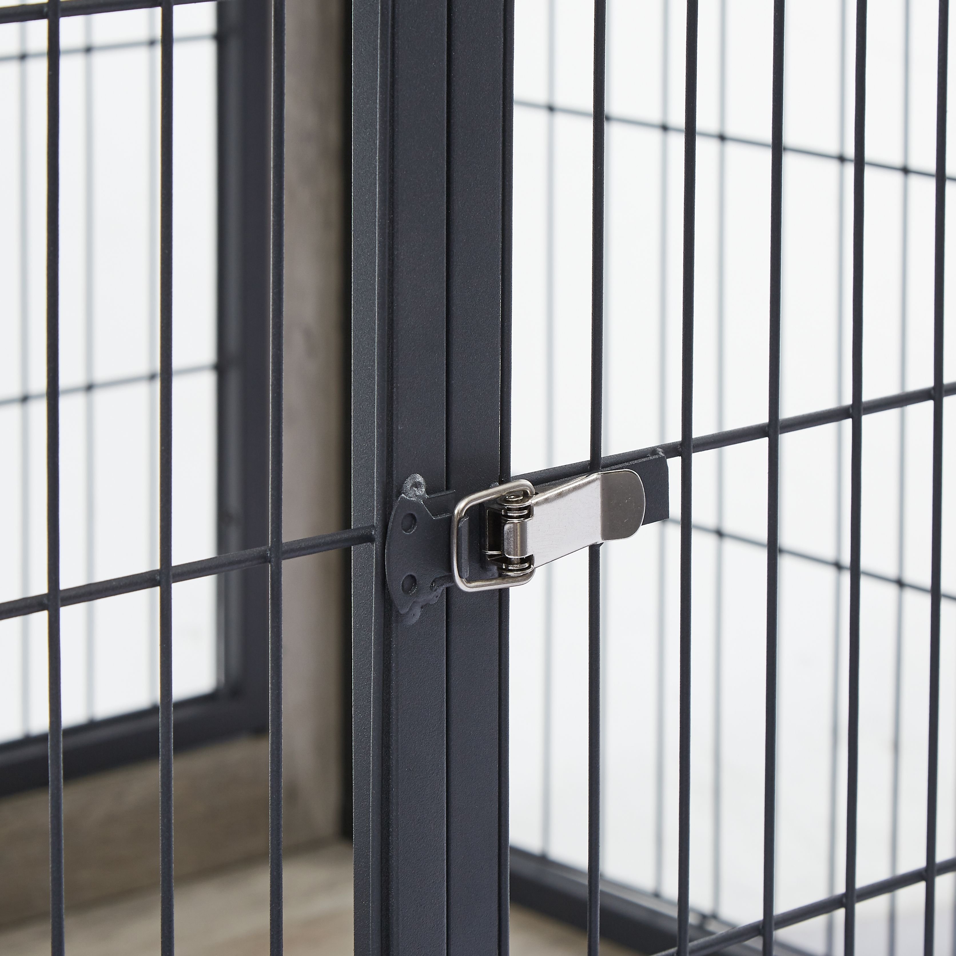Style meets function with this versatile wooden indoor kennel that serves as a secure space for your pet as well as a practical piece of furniture that easily blends with your interior design.