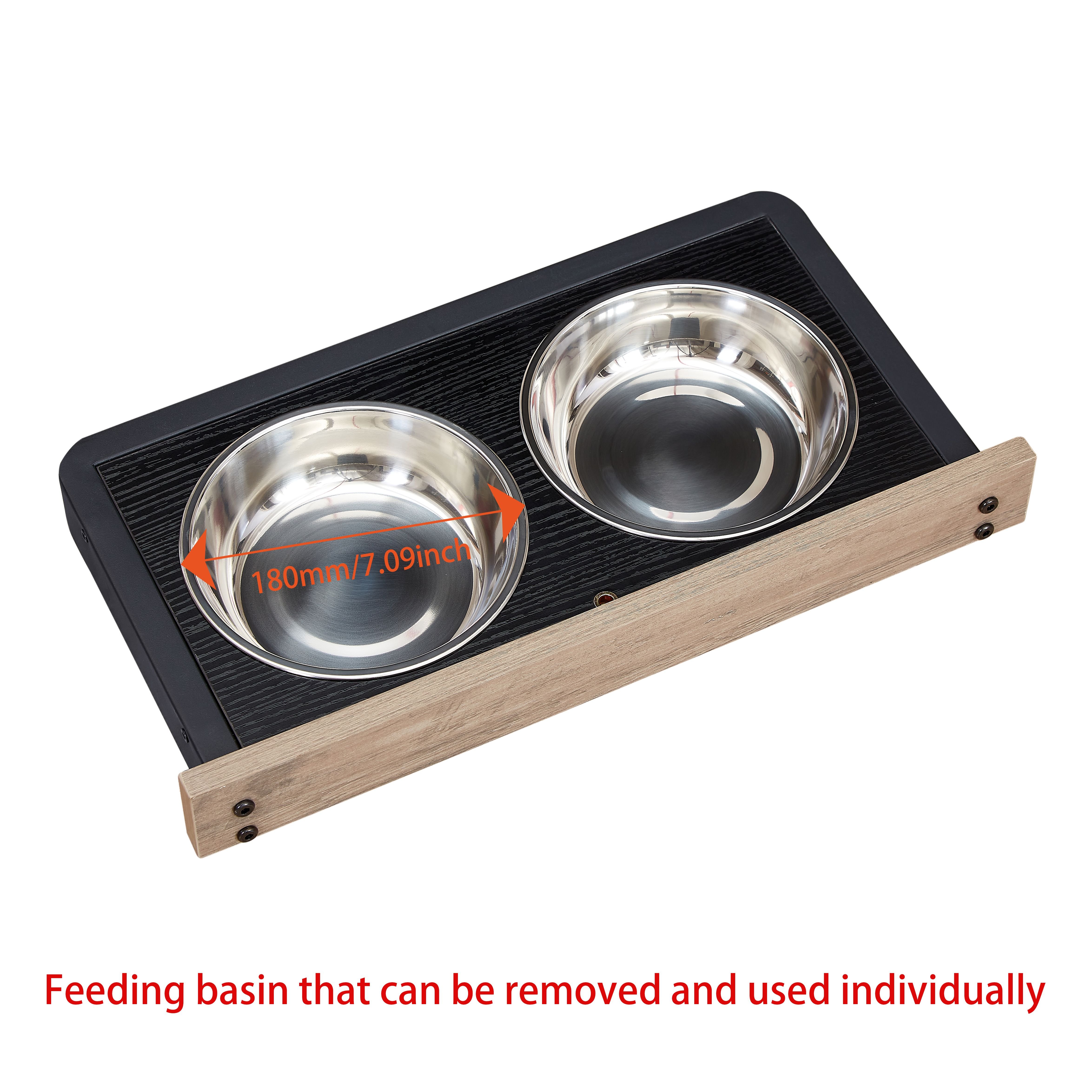 Adjustable BowlAdjustable raised dog feeder, comes with 2 stainless steel 7-inch dog food bowls and adjustable position (outside or inside of the dog crate) to adapt to the different eating needs of dogs.