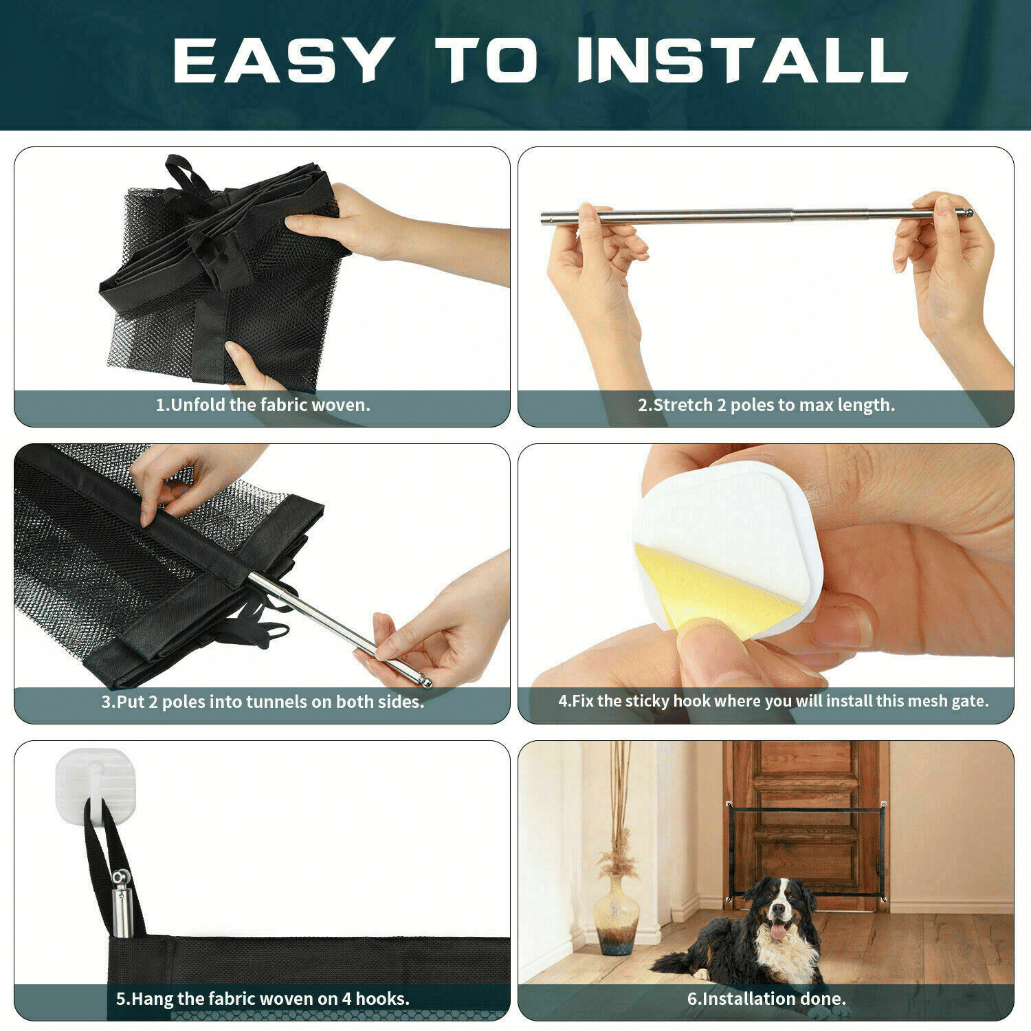 The unique woven barrier can easily retract to a fully or partially quick pass-through. It can be assembled immediately without any tools.