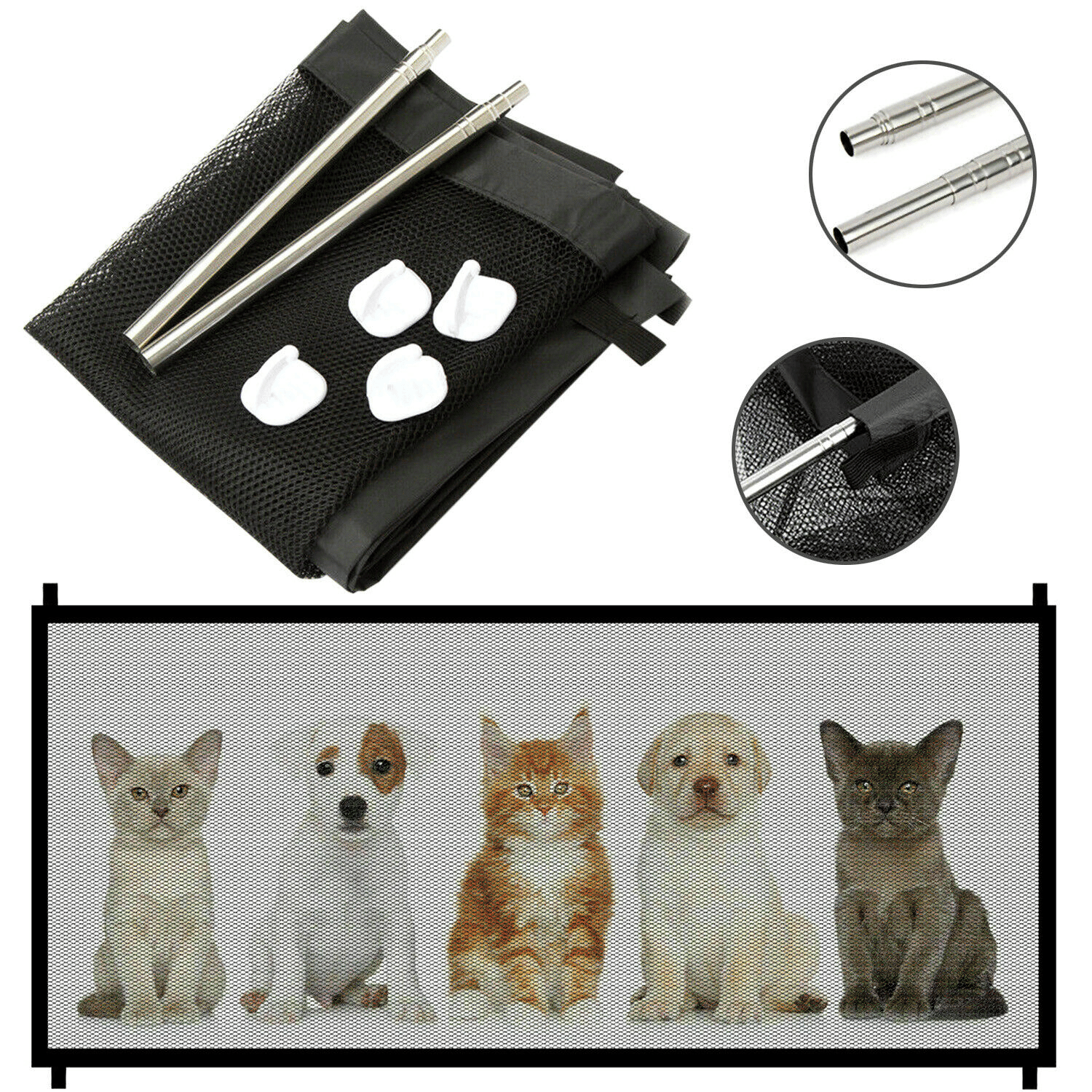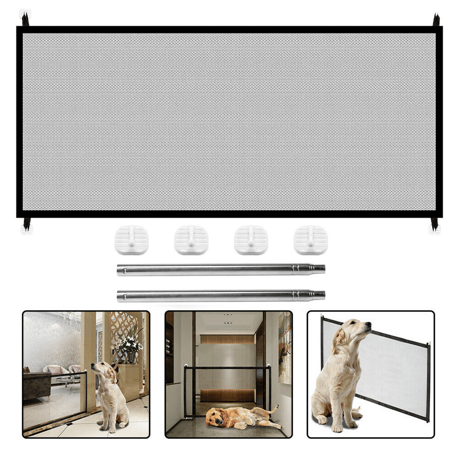 Home > Pets Dog Cat Baby Safety Gate Mesh Fence Magic Portable Guard Net Stairs Doors