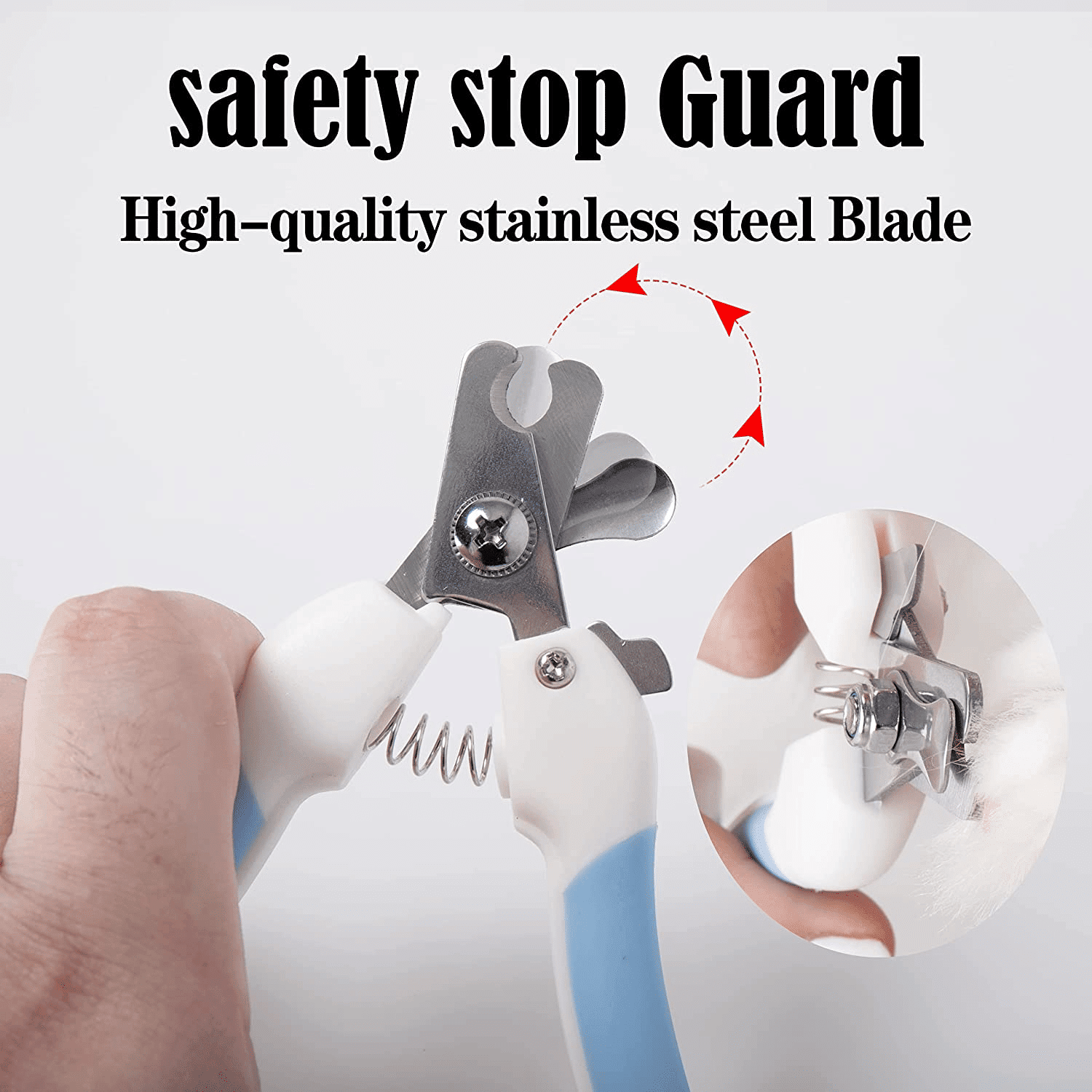DESIGNED FOR SAFETY - Worried about over-cutting? No need to feel nervous! Nail trimming should be an easy experience; which is why each Nail Clippers comes with a protective guard to protect your pets from "over-trimming" and safety lock for easy storage. This also helps if your dog's nails are black which prevents you from seeing the quick. Use this heavy duty nail trimmer for dogs with guard as instructed to avoid injury to your pet.